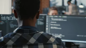 Home / How to Achieve Virtual-to-Virtual Migration / portrait-african-american-programer-online-cloud-computing-laptop-sitting-desk-with-multiple-screens-parsing-code-shoulder-view-app-developer-working-user-interface_482257-37333